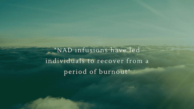 Modern day life has brought about an increased awareness of physical, mental and workplace burnout. Our extensive research into NAD has shown NAD infusions have led individuals to confront challenging areas or help recover from a period of burnout. It is often described as a physiological reboot and a ‘re awakening’ of a fresher you!